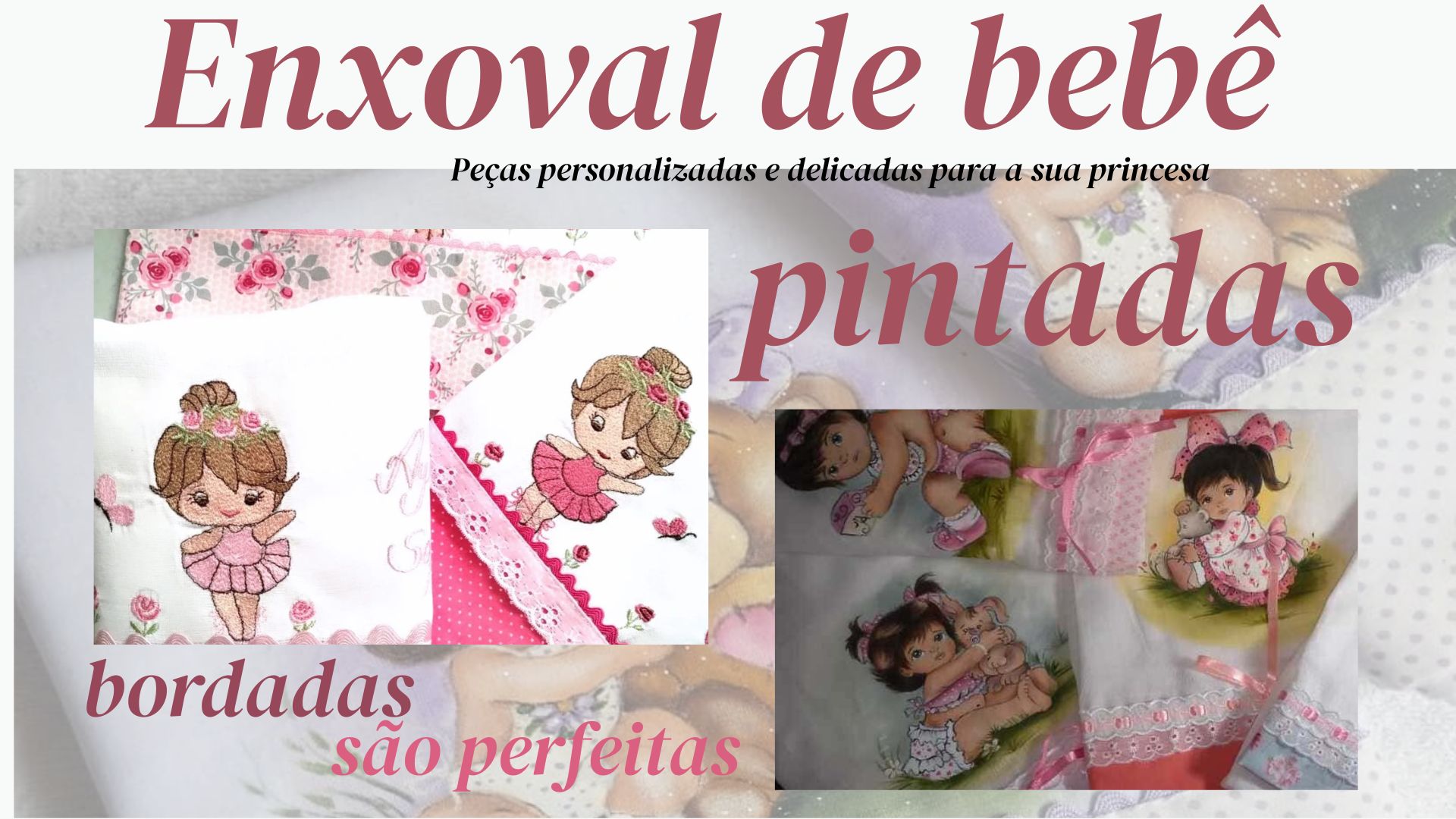 Encanto em cada ponto...Sua história começa aqui! Bem-vindo(a)á nosso site,onde a arte de confeccionar enxovais a encontra paixão pelos detalhes! Trabalhamos com criação de enxovais personalizados e comuns,transformando sonhos em peças de tecidos únicas. Cada item que sai do nosso atelier é feito de forma totalmente artesanal, carregando o carinho e a dedicação de quem ama o que faz. Peças com delicada pintura á mão. Bordados clássicos e detalhados em ponto cruz.😹 Charme e tradição com toques de crochê. Enriquecimento das peças com diversas aplicaçôes. A elegância atemporal do bordado rechilieu. O toque refinado da bainha aberta. Seja para montar seu enxoval do seu bebê,renovar a casa ou presentear com afeto, garatimos qualidade,beleza e exclusividade em cada trabalho apresentado. Permita-nos fazer parte da sua história,criando peças que duram e emocionam!